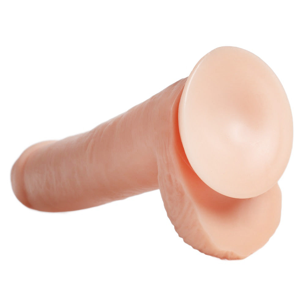 This long dong has thick testicles at the base to ensure this dildo stays safely anchored outside your body so you can enjoy yourself vaginally or anally. The sturdy suction cup base underneath the balls secures the toy to any flat, solid surface for you to ride, hands-free, or you can slip it into a strap-on harness and partner up for some extreme strap-on fun!