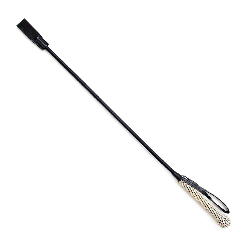 This long-handled riding crop is sure to get your plaything's heart racing as you lay it against their skin, teasing them with soft taps or delivering the harder, sharper stings they crave. The firm yet flexible faux leather tongue is vegan-friendly for all kinksters to enjoy and sits at the end of a ribbon-wrapped shaft that has just the right amount of give in it for perfect pain and pleasure. This spanking tool is topped off by a stunning crystal diamante-studded handle that gives you a secure grip and is sure to catch the light when you swing it menacingly through the air! Once your scene comes to a close, you can use the wrist strap to easily hang up your crop in storage or display with the rest of your BDSM accessories before showering your sub with the aftercare they deserve...