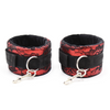 These beginner-friendly bondage cuffs feature a floral lace-like pattern over a colourful contrast backing for a sultry look and are blessed with a plush, padded interior for a comfortable feeling against the skin. The adjustable Velcro® closure is quick and easy to get in and out of so BDSM beginners don't need to worry about buckles, locks, or knots and are perfect for wearing on the wrists or ankles. The snap hooks attached to each cuff make it easy to clip the cuffs together or to other restraints and harnesses (sold separately) for versatile restraint play!