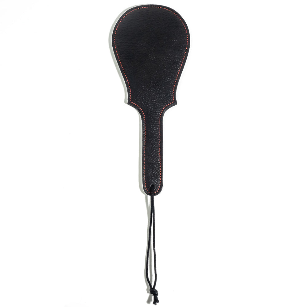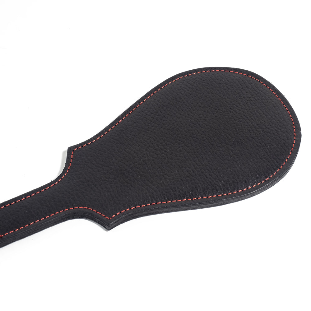 This sleek and simple spanker has contrast red stitching for a striking look and is made from grain leather for a premium finish. The lightly textured leather feels great in the wielder's hand and gives a perfectly firm yet smooth sensation against the recipient's skin with every swat. The wide, round end lets you apply the force of the impact over a broader area to deliver more pain and pleasure all at once. The slim, contoured handle is easy to hold for a confident swing and also has a hanging loop threaded through it for convenient storage or display once the fun is done.