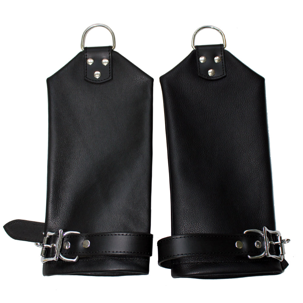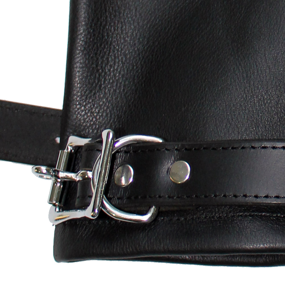 These premium leather mitts encase the wearer's hands in a soft suede lining, rendering them unable to use their fingers from within their smooth and supple leather prisons and leaving them totally at your mercy. The adjustable belts at the wrists let you secure their hands inside, with specially designed buckles that work with padlocks (sold separately) so they can't wriggle free, no matter how much they struggle!