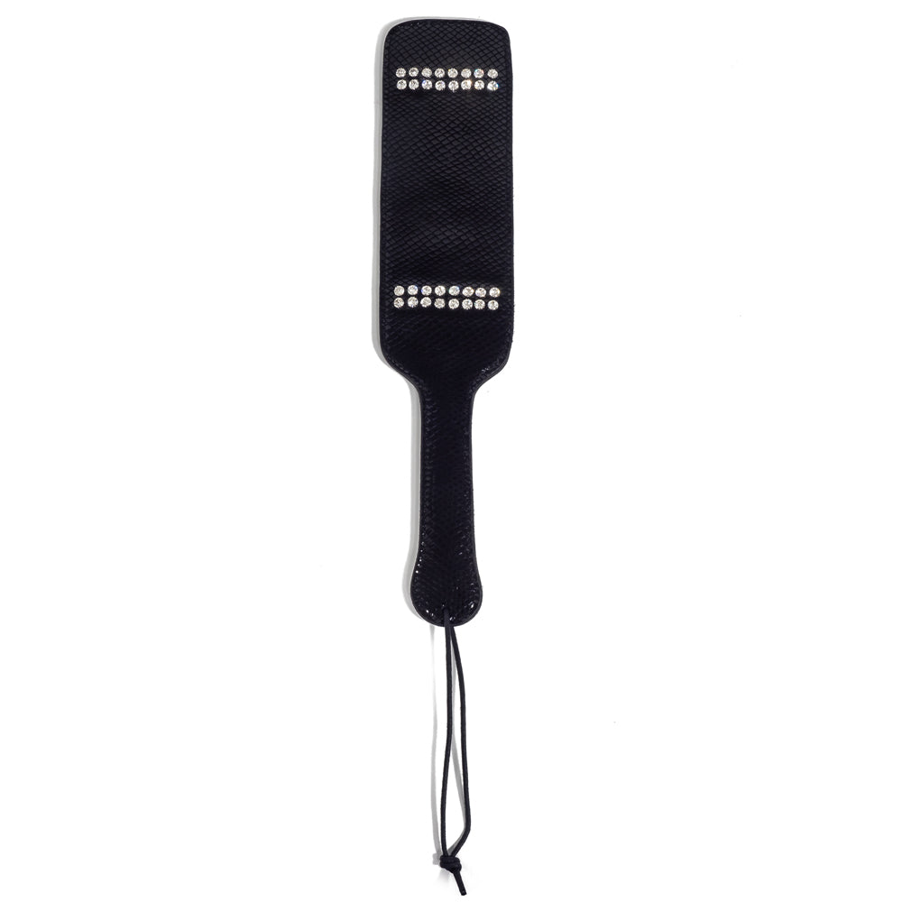 Spank your playmate into sexy submission thanks to the Patent Leather Snakeskin Spanking Paddle With Rhinestones from Zorba!