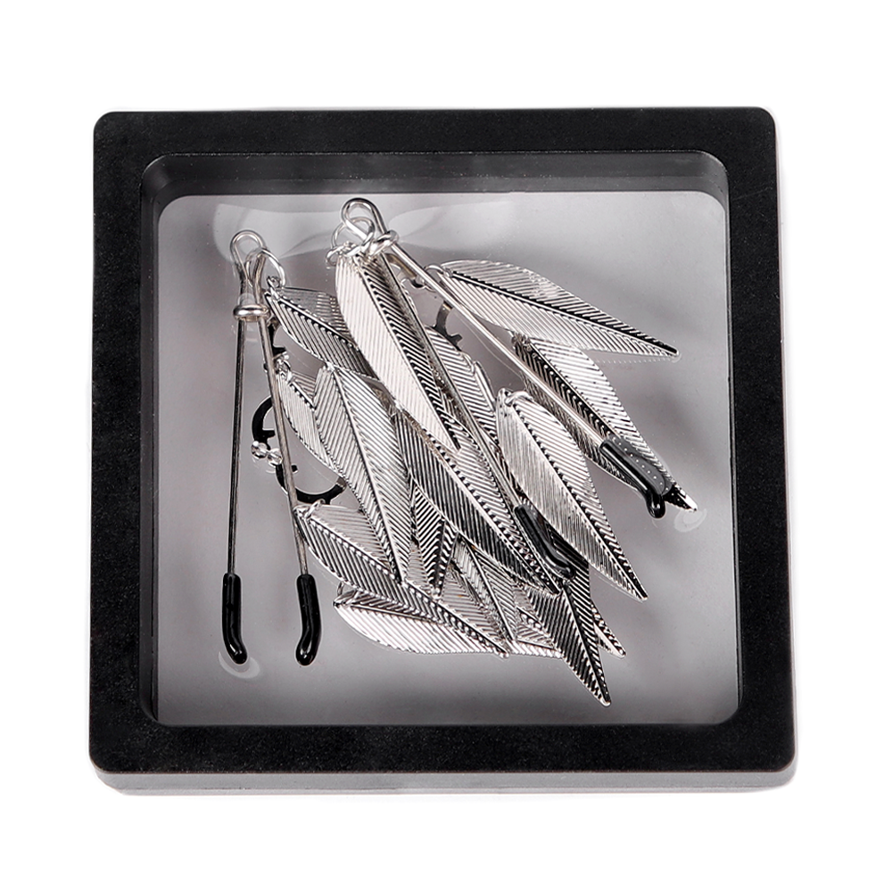 - Dozens of leaf charms layered in a cascading diamond shape for an elegant look