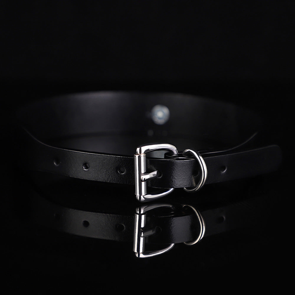 This subtle BDSM collar is made from a slim piece of genuine leather with smooth burnished edges that feel comfortable against the skin and is finished with polished silver metal hardware that's bolted through the leather for durability. A petite horseshoe-shaped D-ring sits at the front of the collar and can be positioned upwards for discreet wear with everyday outfits or downwards to allow for leash attachment (leash sold separately). The adjustable rear buckle lets you get your perfect fit and the metal keeper tucks the tail in for a neat finish that lets the real star of the show shine: you, of course!